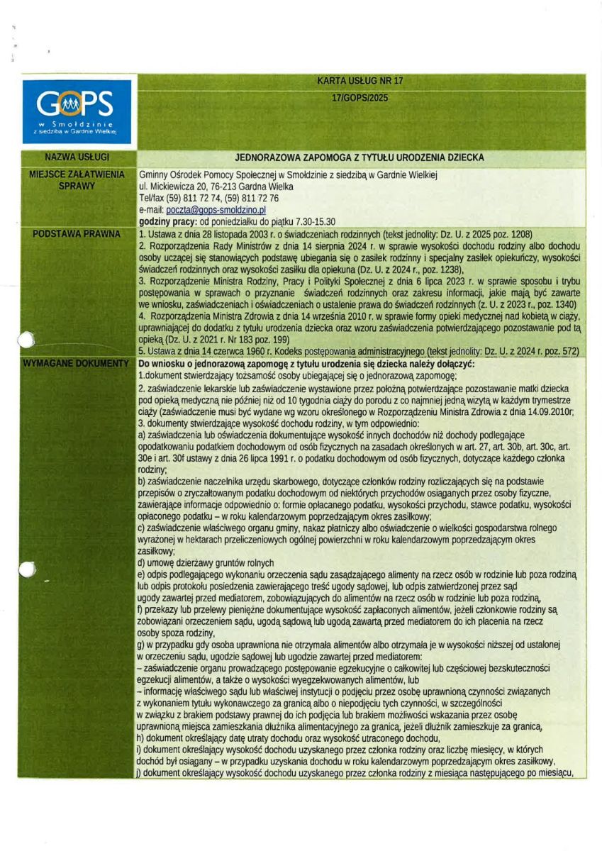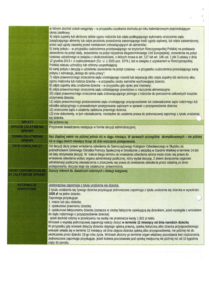 Karta usług jednorazowa zapomoga z tytułu urodzenia się dziecka